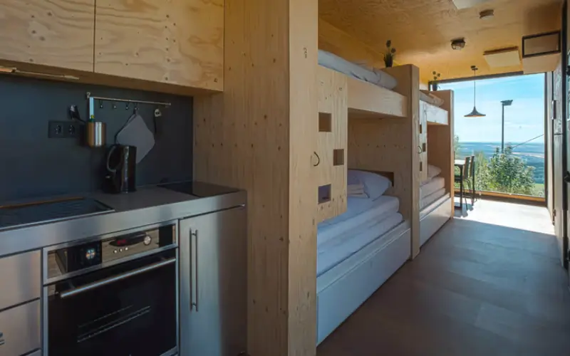 In het oosten van Duitsland, in de deelstaat Saksen, ligt het rustieke plaatsje Schöneck, waar je een aantal zeer bijzondere tiny houses vindt. Deze Bergheim Container lodges, gebouwd in de vorm van containers, bieden een spectaculair uitzicht op de omringende bergen. Bovendien liggen ze in de directe nabijheid van diverse fietsroutes, skipistes en skiliften. Zowel het afwisselende Bikepark met 5 verschillende fietsroutes, als de skiliften Hohe Reuth en Streugrün liggen op een steenworp afstand. Dat maakt deze natuurhuisjes ideaal als uitvalsbasis voor een sportieve ski- fiets- of wandelvakantie.
