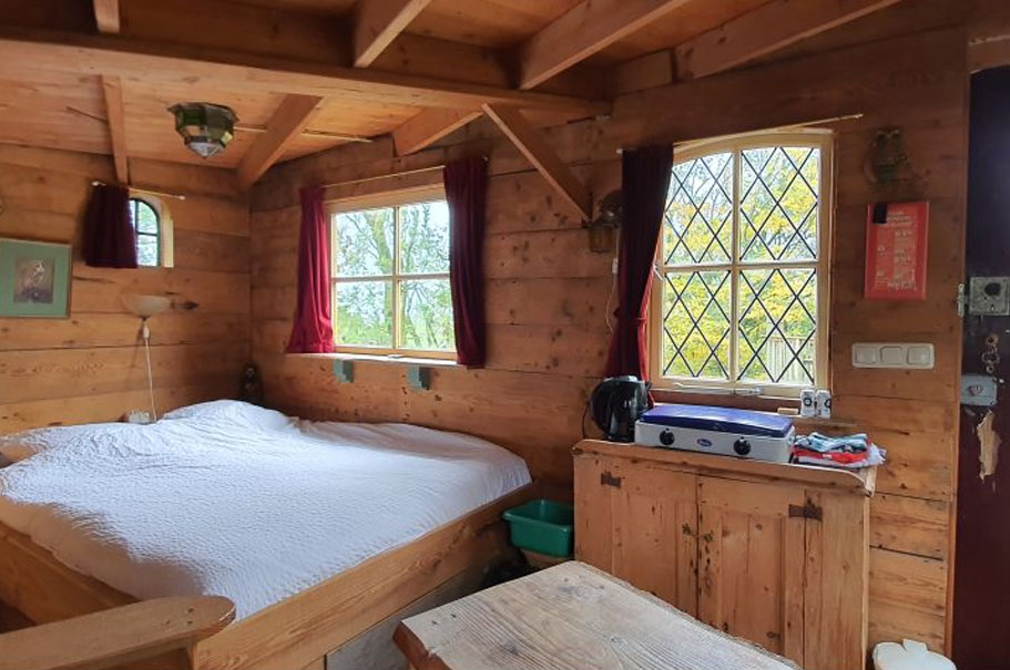 De boomhut is geschikt voor twee personen. In het huisje is een elektrische kachel, een kooktoestel en elektrische verlichting aanwezig. Ook is er een kleine keukeninventaris aanwezig (met een waterkoker, bordjes, bestek, glazen en kopjes). Het sanitair is op korte loopafstand van de boomhut te vinden. Ook vanuit dit huisje kan er, voor 15 euro per anderhalf uur, van de sauna gebruik worden gemaakt.