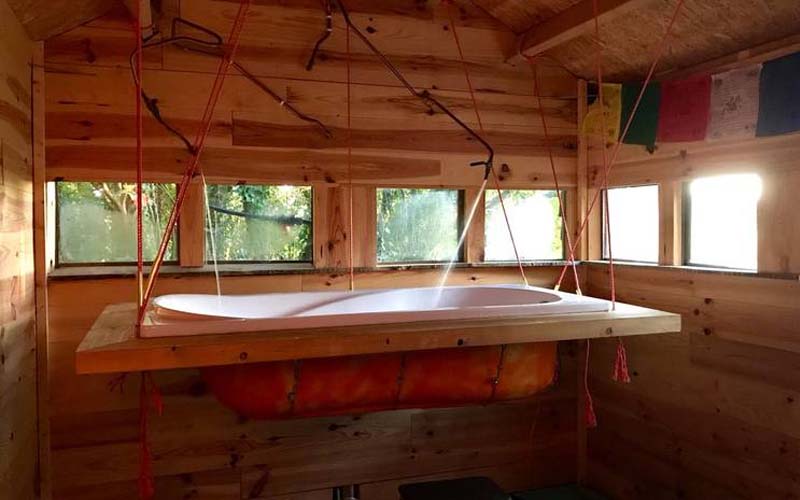 De yurt is op traditionele wijze beschilderd en is voorzien van een houtkachel. De tent is sfeervol ingericht om voor een bijzondere overnachting te zorgen. In het bijgebouwtje staan een privé badkamer met een douche, wasbak, toilet en een uniek zwevend bad tot je beschikking. Daarnaast kun je gebruikmaken van de sauna.