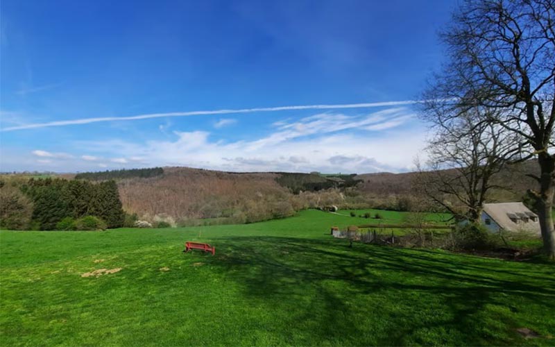 De bijzondere ligging van het vrijstaande vakantiehuis in Villers-Sainte-Gertrude maakt van je verblijf een unieke ervaring. Het huis staat deels op palen, zodat het volledig opgenomen wordt in het heuvellandschap van Belgisch Luxemburg. Je hebt niemand in de directe omgeving, want het huis ligt aan een kant aan een eigen bospad. Aan de andere kant heb je vrij uitzicht over de heuvels en de glooiende, groene weilanden. Er is een verhoogd, houten terras rondom een groot deel van het huis. Zo kun je van diverse kanten vanaf je tuinstoel van het uitzicht kunt genieten.