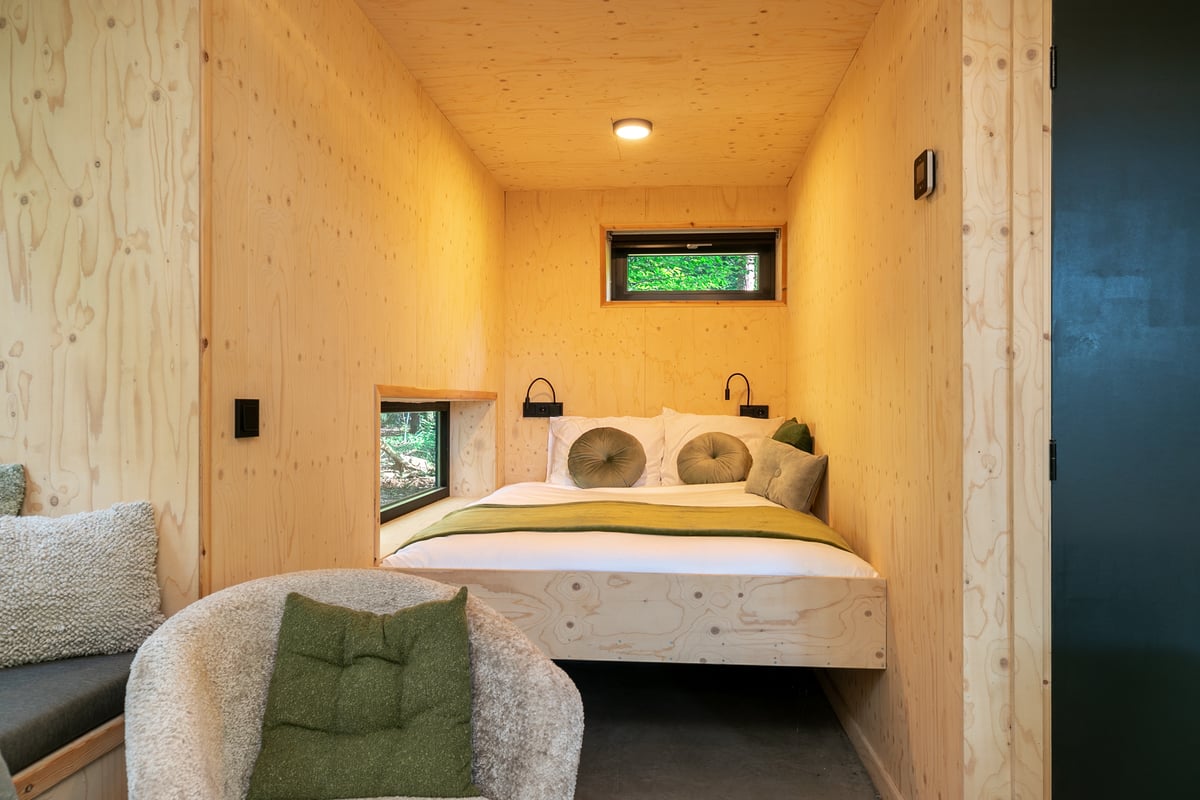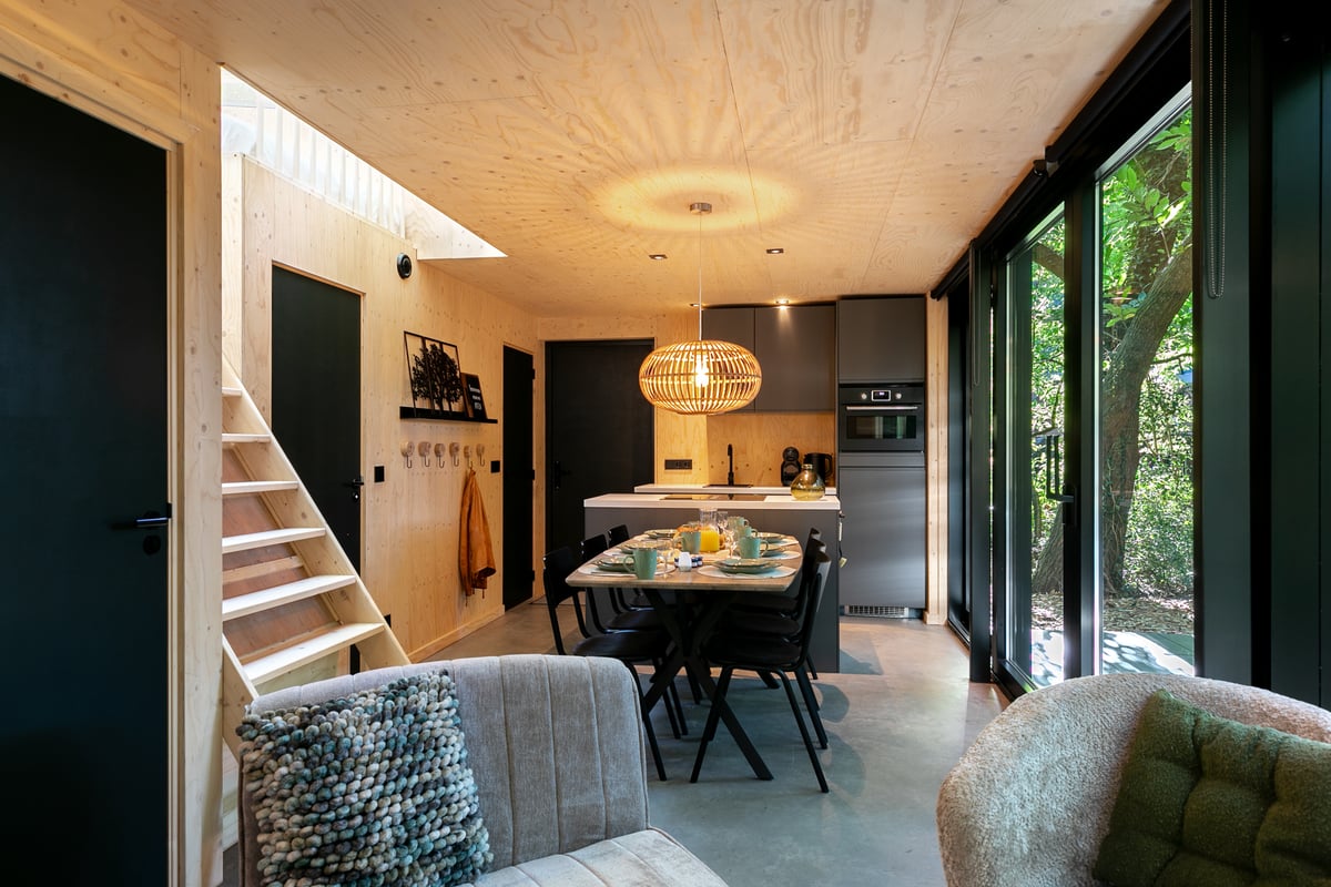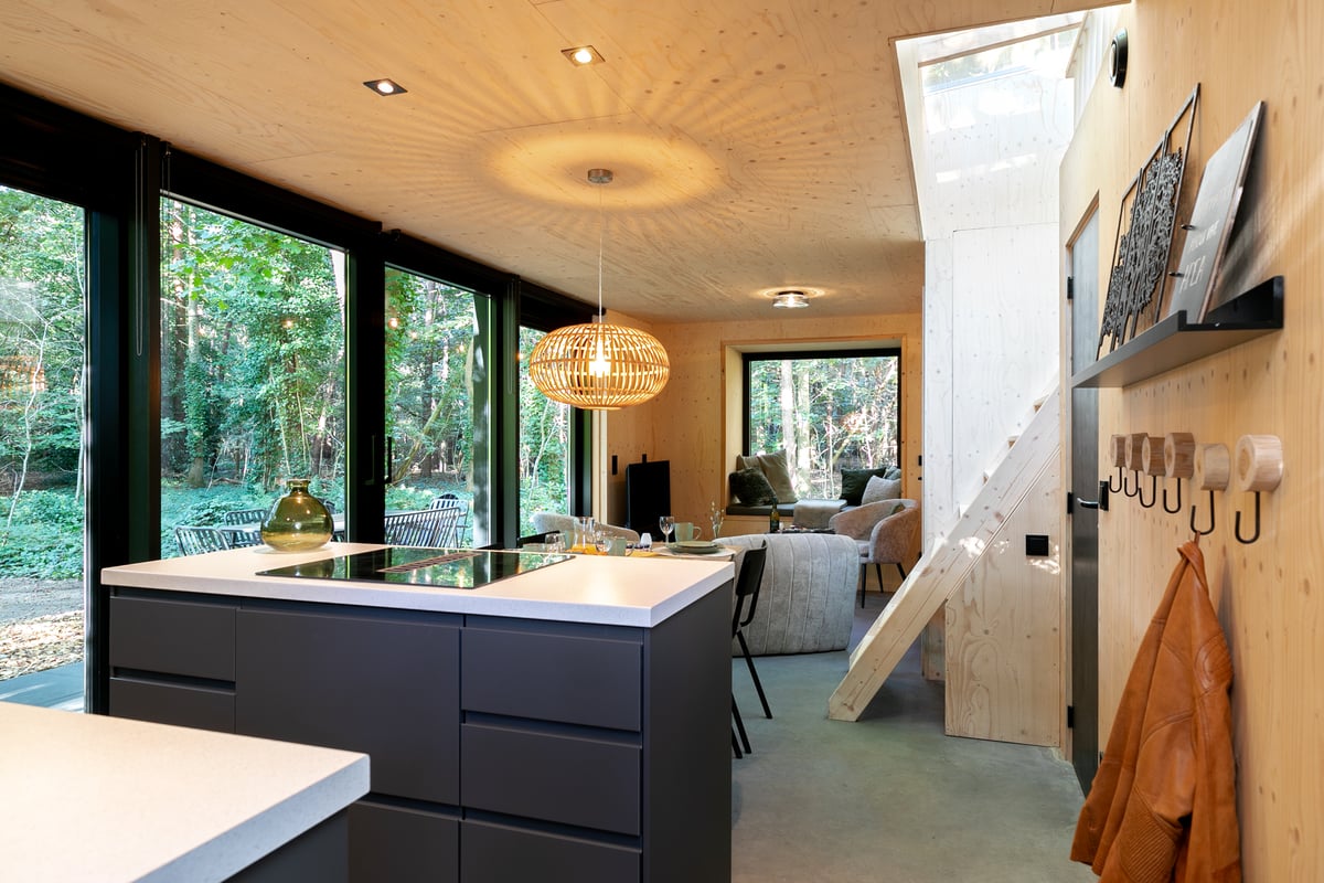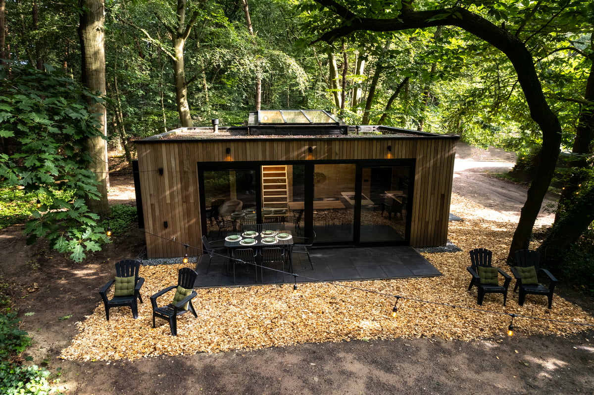 Verblijf in dit prachtige, architectonisch ontworpen vakantiehuis midden in de bossen van Teteringen. Dit moderne huis is geschikt voor maximaal vier personen en omvat drie slaapkamers: een luxe 2-persoons bedstee, een knusse slaapvide onder de sterrenhemel en een slaapkamer met een stapelbed. Hier geniet je van een regendouche, een bubbelbad en van ultiem comfort en rust. Met een volledig afgesloten gebied van 1500m2 eigen bos, kun je de natuur letterlijk binnen handbereik ervaren. Dankzij de perfecte mix van binnen- en buitenleven voelt het alsof je echt ƩƩn met de natuur bent. Op het terras geniet je van de frisse boslucht en de rust om je heen.