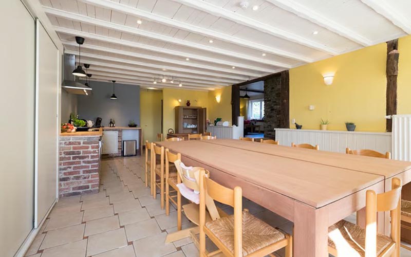 Of je nu met een vriendengroep naar Petit-Halleux gaat, of met je hele familie. Gezelligheid staat bovenaan als je in dit natuurhuis verblijft. Er is een ruime keuken die van alle moderne gemakken als een afwasmachine en een koel-vriescombinatie is voorzien. Op de eerste etage is een kleine bibliotheek ingericht, er zijn gezelschapsspelletjes aanwezig, je kunt tafelvoetbal spelen en er zijn dvd’s voor het uitkiezen. Bovendien is er gratis WIFI. Terwijl de volwassenen buiten eten roosteren op de barbecue, vermaken de kinderen zich in de grote tuin op het speeltoestel. Het natuurhuis heeft zeven slaapkamers en vier moderne badkamers.