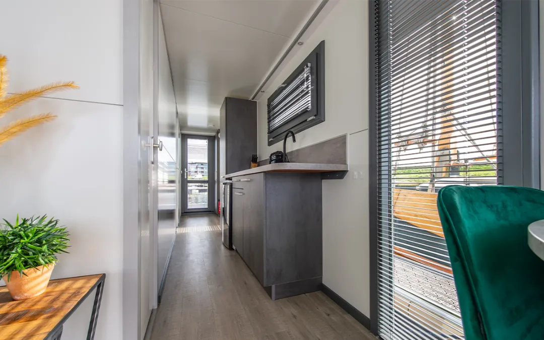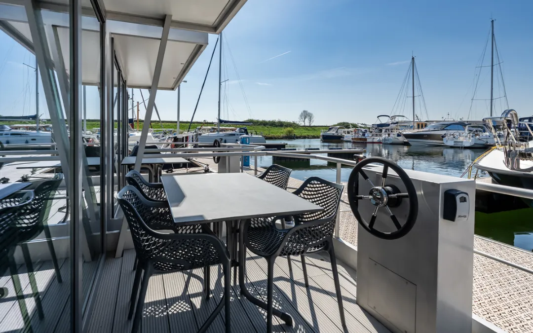 Vanuit uw eigen terras ziet u de boten voorbij glijden en hoort u het rustgevende geklots van het water.